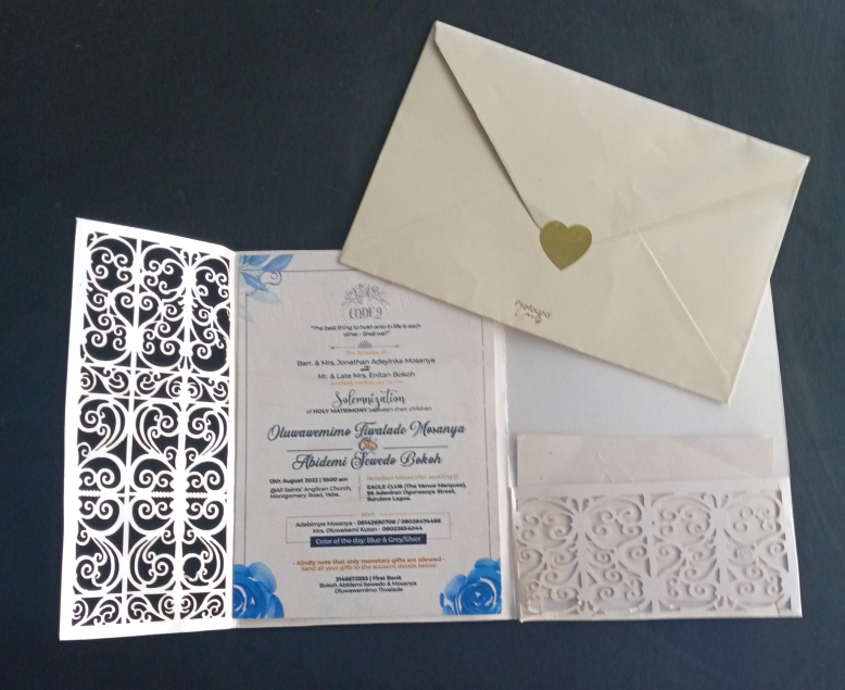 This Wedding invitation Card is designed with a stunning laser-cut element and blank inner that capture invite details.